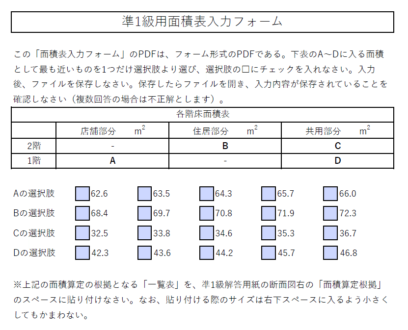 時間が余ったら、面積のチェックをする時間にあてることをおススメします。