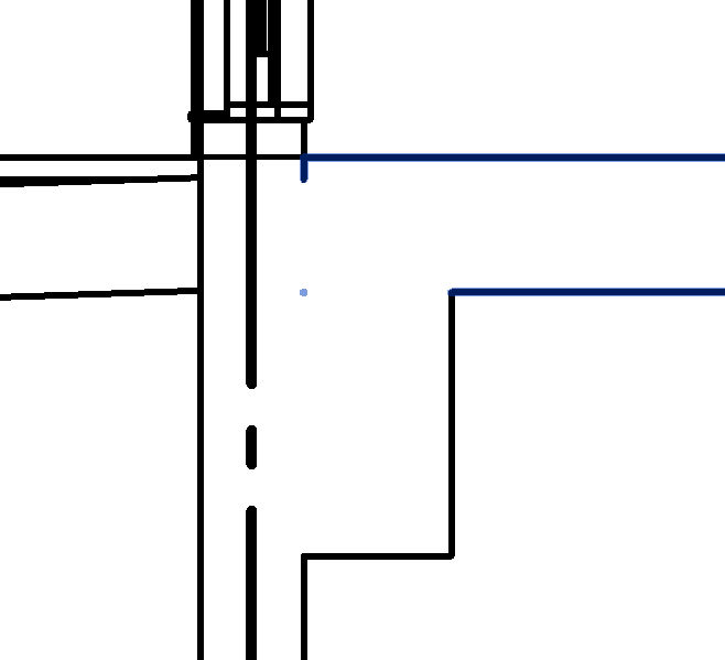意匠図では壁と柱は意匠同士、構造同士であれば自動的に結合されますが、壁、梁、床を断面図で見てみると下図のような状態になっています。