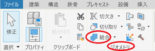 2.修正|構造フレームタブ>ジオメトリ>結合を選択します。
