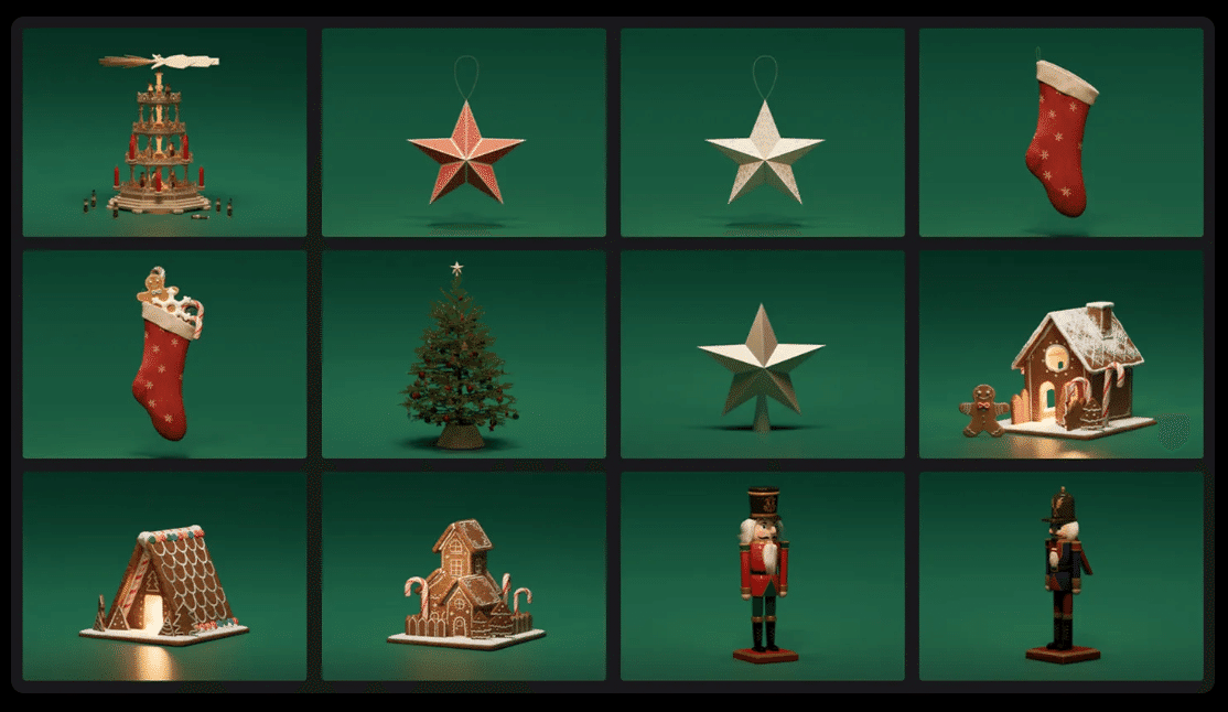 冬の環境やホリデーシーンに最適な、ツリー、ギフト、雪だるまなど。